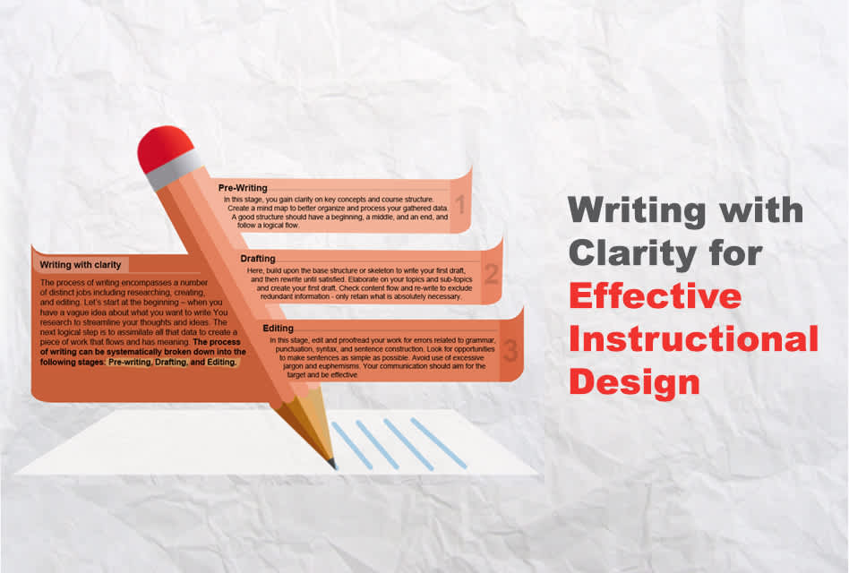 - Rewrite – Writing is all about rewriting. After you compose your first draft, take a break and perform another activity before returning to revise your work. If time doesn’t permit, consider sharing the draft with a peer. This allows you to view your work with a fresh perspective. In this stage, it is about quality. So weed out all the excess and only retain what is absolutely necessary. Assess if the flow of content should be rearranged and whether any content addition or deletion is required. You don’t want to bombard your readers/learners with excessive information, but rather only serve up content that specifically helps in making your concept better understood. Check to see that there are no redundancies, and if what you’ve written makes sense and the meaning is clear.